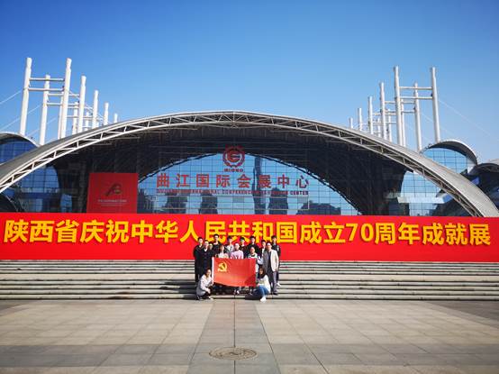 10月17日下午,申搏sunbet员工第一党支部全体成员在曲江国际会展中心门口集合,由张晖、刘昊雨老师带领参观学习“陕西省庆祝中华人民共和国成立70周年成就展”。