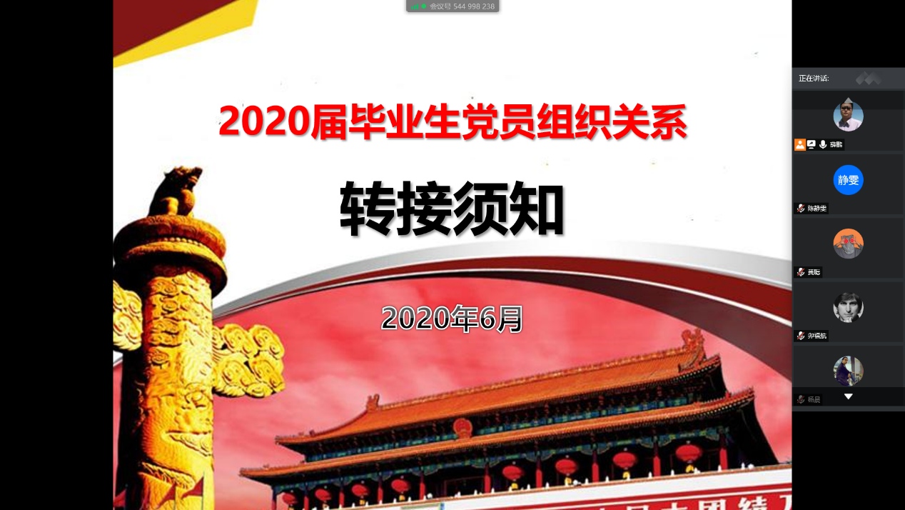 公司党委于2020年5月31日晚使用腾讯会议APP召开了2020届毕业生组织关系转接动员布置会,会议由公司党委组织员薛鹏主持、全体毕业生党员参加。