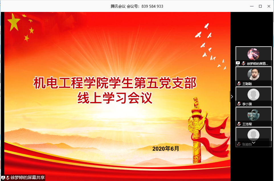 申搏sunbet第五党支部于2020年6月26日开展了线上会议,会议围绕“学先进榜样,做优秀党员”展开。内容包括学习“三秦楷模”施秉银、付凡平同志和赵梦桃小组先进事迹及学习“全省优秀共产党员”施秉银、张怡、雷根平和乔锦仁同志先进事迹。本次会议由员工第五党支部书记黄彦军同志主持,由徐梦婷和辛豫婕同志领学。