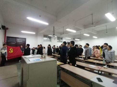 活动中支部书记雷世舟指出,今天我们在这里重温入党誓词,希望各位在重温入党誓词的同时,能够自然的想起自己作为一名共产党员初心和使命,用入党誓词来规范自己的一言一行。接着在雷世舟的领誓下,在鲜红的党旗前,全体党员同志举起右拳,面向党旗庄严宣誓,一起重温入党时对党和人民的庄严承诺。宣誓环节完成后,雷世舟希望大家可以通过本次活动坚定党性、坚定信念、坚定理想、坚定追求,增强“四个意识”,坚定“四个自信”,做到“两个维护”,并牢记习近平总书记对广大青年的嘱托,积极投身党领导的革命、建设、改革伟大事业,为人民战斗、为祖国献身、为幸福生活奋斗,把最美好的青春献给祖国和人民,谱写壮丽的青春之歌。