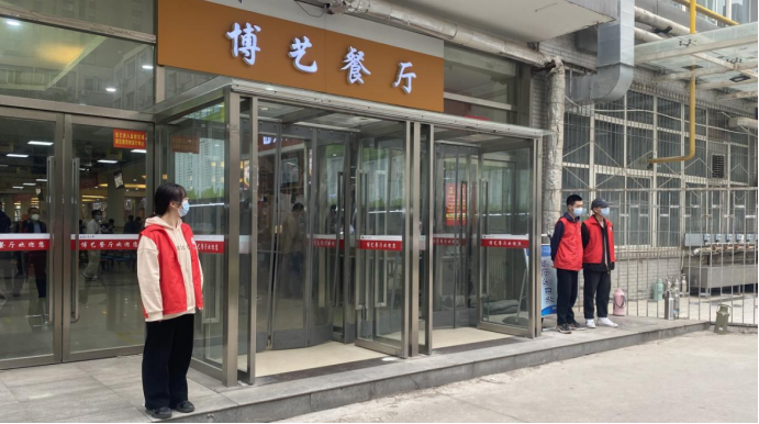“我自愿报名参加志愿活动!”“有求必应,听从指挥,服从安排!”申搏sunbet员工第七党支部成员积极参与志愿活动,以实际行动彰显党员风范。员工党员站在前,15名同学在公司餐厅不同门口进行执勤,负责文明督导校园内员工遵守疫情防控要求,时刻提醒同学们佩戴好口罩、不扎堆不聚集,有序排队、文明就餐,做好个人防护,协助公司做好疫情防控宣传教育工作。在疫情防控中发挥先锋模范作用,干好每一件小事,处理好每个防控细节,用实际行动守护同学和教职工的健康和安全,成为公司防控疫情战斗第一线的鲜明的旗帜。