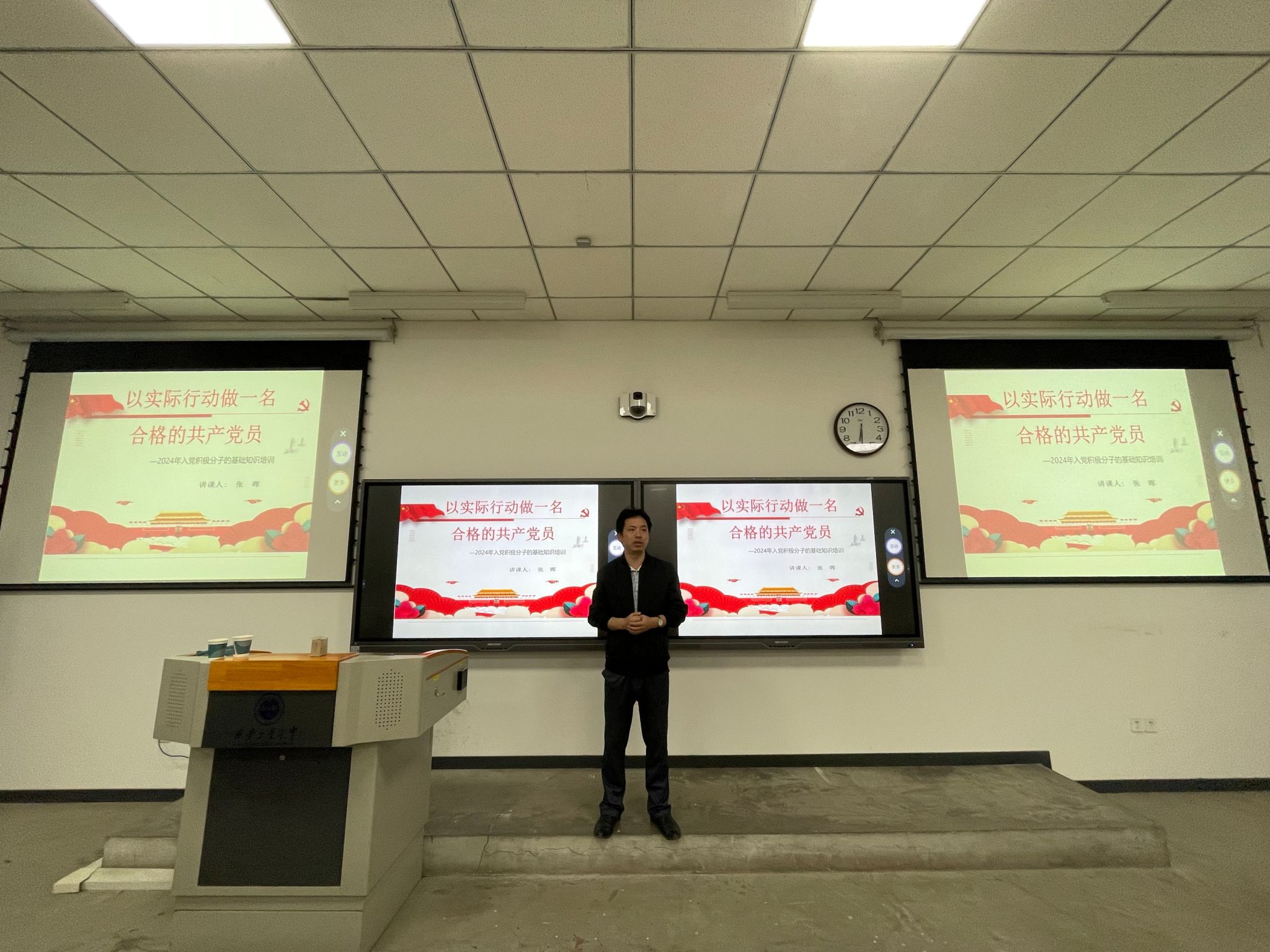 为进一步做好发展党员工作,加强对入党积极分子的教育培训,提高积极分子思想政治觉悟,深化对党的认识,端正入党动机,严把党员入口关。4月11日,申搏sunbet第68期积极分子培训班在教2-103开课,本次党课主题为“以实际行动做一名合格的共产党员”,由申搏sunbet党委委员张晖授课,第68期积极分子培训班学员参加。