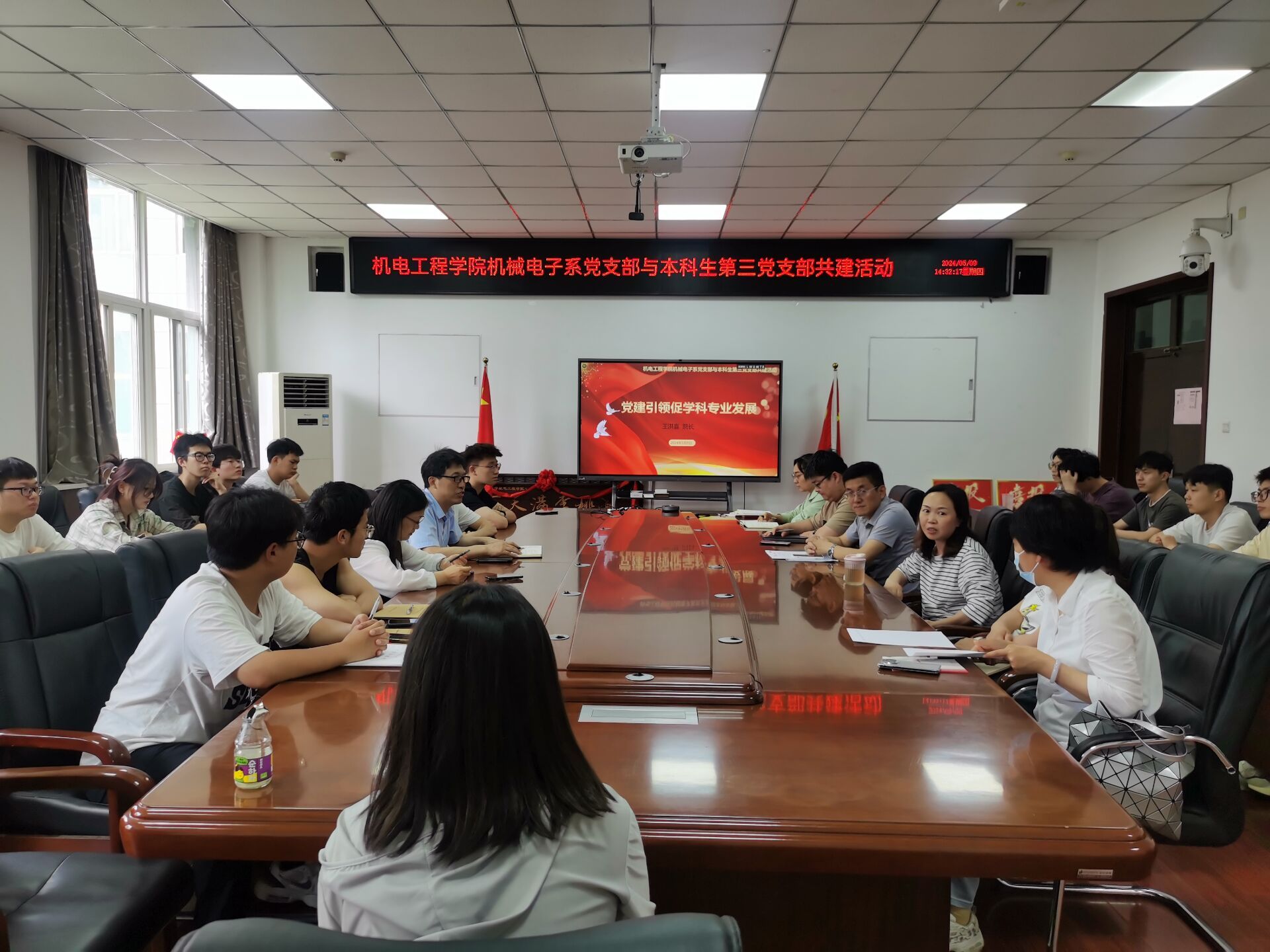 为促进机械工程学科机械电子系专业发展,提升学科专业认识,加强教师党支部与员工党支部间的交流,近日,申搏sunbet机械电子系党支部与本科生第三党支部开展支部共建活动。申搏sunbet经理王洪喜、副经理曹蔚、机械电子系党支部书记尹培丽、本科生第三党支部书记杨博及支部党员30余人参加。本次活动由机械电子系党支部书记主持。