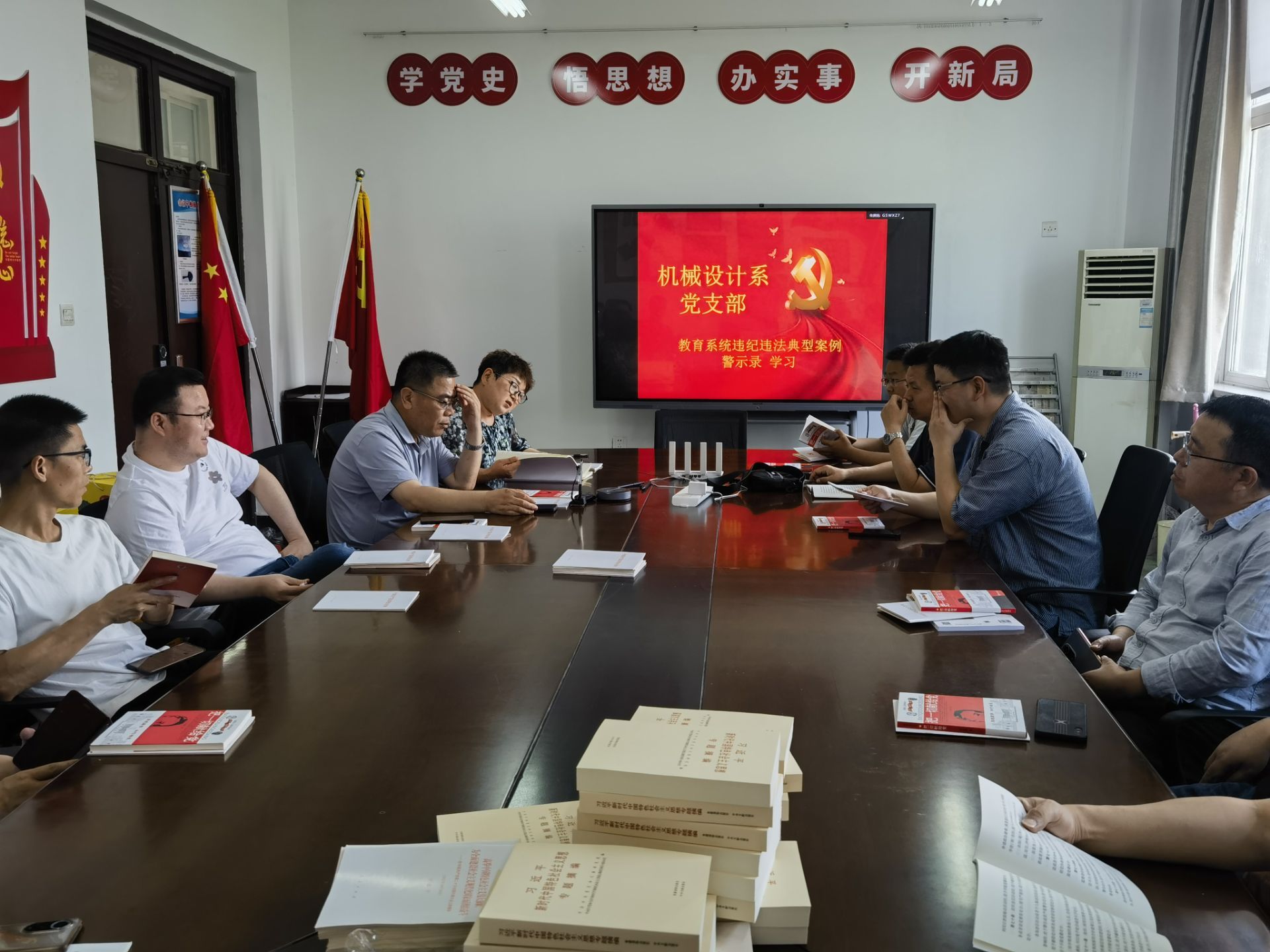 为贯彻落实习近平总书记关于党纪学习教育的重要讲话和指示精神,为提高党员干部的拒腐防变能力,扎实落实党纪学习教育,机械设计系党支部于近日组织学习《教育系统违纪违法典型案例警示录》。本次会议由支部书记瞿金秀主持,支部党员和设计系教师参会。
