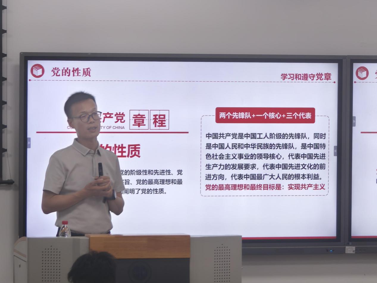 为深化员工对党的深刻认识,帮助员工明晰入党规范,坚定理想信念,明确努力方向,5月29日,申搏sunbet第70期积极分子培训班在教2-103开课,程新峰老师以“中国共产党章程”“中国共产党的性质”为主题,为大家带来一堂严谨而深刻的党课,强化入党标准意识,筑牢信仰之基。