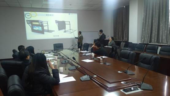 活动伊始,经理马保吉教授以创新驱动发展为主题,介绍了本次比赛的意义与目的。接下来,在张新运老师的统筹安排下,各参赛队伍开始有序入场进行作品展示。本次大赛以“关爱民生,美好家园”为主题,参赛作品范围涵盖辅助人工水果采摘装置和解决城市小区中家庭用车停车难问题的小型停车机械装置设计与制造这两个方面。各评委老师认真聆听各参赛队伍的设计想法,并对作品提出了很多好的建议与期望。在每组比赛结束之后,评委老师们一次次激烈的讨论与交流也保证了评分的公平性、合理性。在经历6个小时精彩绝伦的答辩之后,各评委老师再次开会对这37组参赛队伍进行了复议,并最终确定了各参赛队伍的分数与排名。