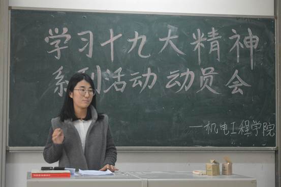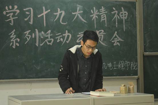 大会伊始,嘉宾落座。唐雅莉老师首先指出近期团支书工作中出现的问题,并对其后期工作提出要求。唐老师通过宣读关于在全校团组织集中开展认真学习宣传贯彻党的十九大精神的通知,对公司认真学习宣传贯彻党的十九大精神系列活动做了详细的的安排,并提出相应要求:各班团支部要从原原本本认真学原文做起,认真学习党的十九大报告和党章,着重把握“关于在全校团组织集中开展认真学习宣传贯彻党的十九大精神的通知”文件中的10个方面,深刻领会十九大精神内涵;团干部要带头学习、完整领会党的十九大精神,当好团员青年的表率,深入基层开展宣讲;基层团组织要开展专题学习会,结合自身实际,学习贯彻党的十九大精神。员工会主席陈鑫和团委副书记刘浩浩分别对开展十九大相关活动及各班团支部开展团日活动做出了相应安排。
