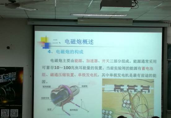 宣讲会上,王泽民老师为大家详细地讲解了有关加农炮的基础知识。王老师先以火炮的发展史做引导,对火炮进行了分类,并讲解了火炮的局限。而后对电磁炮进行了概述,介绍了电磁炮的发展史,电磁炮的分类:线圈炮(本次比赛主要用炮)、轨道炮、电热炮、重接炮,以及电磁炮的发射原理、结构特点。重点有:电磁炮是利用洛伦兹力来对金属炮弹进行加速;电磁炮主要由电源、加速器、开关三部分组成;本次比赛所使用的加农炮主要由炮管与线圈,电容,电源,开关等几大部分组成。