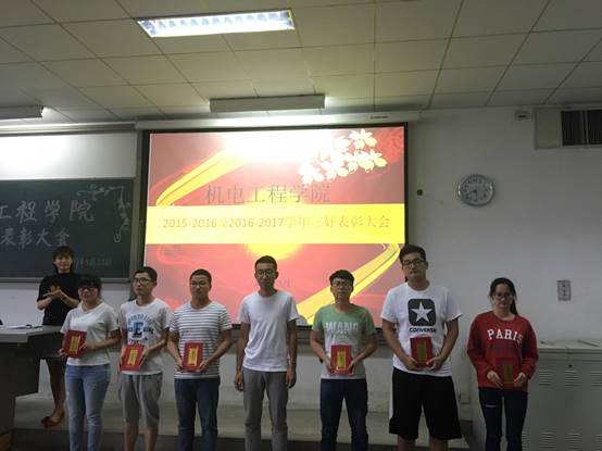 大会开始,张晖老师宣读表彰决定,并对获奖员工表示祝贺,对16级员工寄予希望,本次大会表彰了“三好班级、优良学风班、文明宿舍、国家奖学金、特等奖学金、优秀毕业生、毕业生三好员工、三好员工、优秀员工干部和社会奖学金”共计10类奖项,57位员工代表上台领奖。在激扬的颁奖音乐声中,众位嘉宾依次上台给获奖员工代表颁奖并合影留念。随后,优秀学毕业生代表谢悦上台发表讲话,优秀团支部代表戚攀上台发言并介绍支部情况。会议最后,张晖老师上台对会议做最后总结,并对下一阶段工作予以规划。
