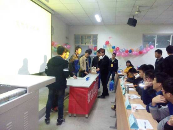 经过各组参赛选手和科协干事们的精心准备,加农炮制作大赛于2014年11月27日晚6:30在教2-201如期举行。出席嘉宾有13级导员薛鹏老师、机械电子系主任王洪喜教授以及各公司科协负责人。