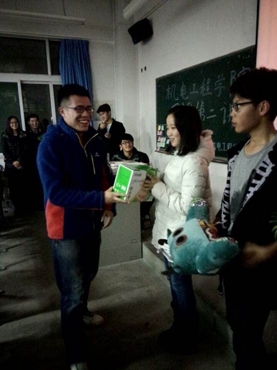 此次团课可谓是别出心裁,为了更好的使每位团支书都能全身投入到本次活动,采取了类似跑男的游戏环节,有奖竞猜与任务加分融为一体。第一个环节就是将24位团支随机分成六组并在每组中抽取两位进行室外任务环节。与此同时室内的选手也在另两位主持人的带领下开始了有奖问答。第三环节是选手与亲友团共同参与的你画我猜和正话反说的游戏环节,所提出的问题也是天文地理涉猎广泛。最后根据各组得分情况,评选出来一、二、三名,并由团委副书记及主席为胜利者们送上奖品,愉快的颁奖礼为本次团课画上了圆满的句号。