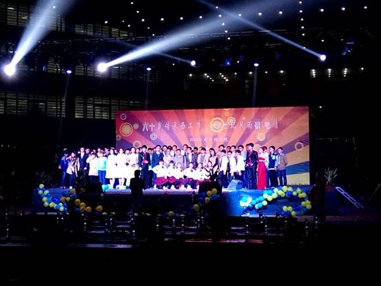 一段视频,播一段剪影;一段视频,放一段祝福;每段视频,展示着申搏sunbet学子的阳光与纯真。未见人,先闻声,集歌曲、朗诵、舞蹈为一体的引场为此次晚会拉开了帷幕。灯光乍现,全场尖叫沸腾,人海中荧光棒与手机光的交替闪烁更是此次晚会的一道亮点。街舞《茉莉花》以及B-BOX将晚会气氛拉到了一个小高潮。歌曲《喜欢你》、《那一天的阳光》、程文冬和赵萦老师合唱的《我们好像在哪儿见过》、西工版《新不了情》激起了同学们心中的片片涟漪;2014级新生简俊陈、李梦楠主演的情景剧《青春梦幻曲》那朴实无华的台词不禁让人默默流泪。侯志敏、汪庆华等老师的舞蹈《我要去西藏》犹如蝴蝶一样翩飞旋转的舞姿以及2014级员工肖斌、杨辉表演的相声《理想》那诙谐幽默的台词掀起了整个晚会的再次高潮。朱育权老师的《白先生教学》、徐通通同学的秦腔片段《二堂舍子》以及书法表演彰显了西工师生的文学范;集创新与环保为一体的走秀节目更是让大家眼前一亮,那集塑料袋与纸为一体的衣服,那明星范的走姿让大家赞不绝口,展现了同学们激情四射的青春活力;集体舞《sissy that walk》体现了新一代学子的个性和青春,给观众留下了深刻的印象,为本次晚会画上了圆满的句号。