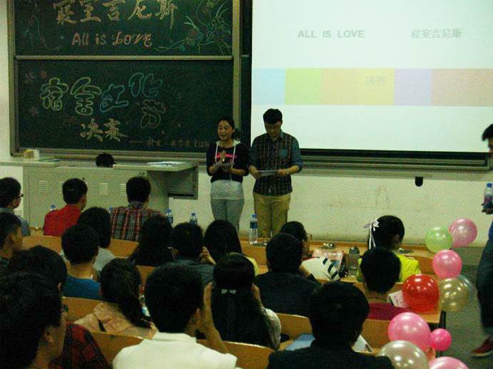 2014年5月12日、14日两天,申搏sunbet在经纬广场和教3-217隆重举办了以“All Is Love”为主题的第三届寝室吉尼斯大赛。此次大赛面向全校大一员工,活动共设有如下4个环节:自行车慢骑、急速乒乓、极限接力、寝室风采。