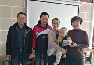 姚敏茹和朱育权与卢志伟老师家属进行了亲切交谈,卢志伟同志现在正在英国进行访学交流,妻子一人在家照顾一岁的女儿,十分辛苦。在场职工代表们一起交流育儿心得,并祝福他们阖家幸福,宝宝健康成长。