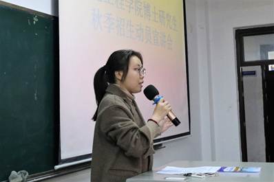 2021级博士研究生田春雷给同学们分享了自己的读博经历,他剖析了自我读博的动力与目标,分享了自己读博的心路历程。田春雷表示,申搏sunbet严谨、自由的学术氛围、前沿的学术平台以及多元化的资源,为博士生们提供了学术支撑,拓宽了学术视野,并鼓励有志报考的同学在学术的道路上坚定意志,潜心学术,通过勤奋的努力收获读博的快乐。
