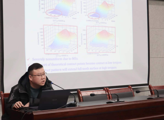 开幕式后,齐慧博士做了题为“Where Do Li-ion Batteries Go”的学术报告,主题围绕锂离子的发展史,当下锂离子相关研究人员专注于纳米晶体即Snse/r-go复合材料,增强伪电容作为锂离子电池的高性能阳极为主,从而阐述锂离子将何去何从的研究;袁冰博士做了题为“Study on Mesh Excitation Modelling and Vibration Behaviors of Cylindrical Gear Transmission System”的学术报告,围绕提出的齿轮副广义传递误差的概念来展开。其中涉及求解静力学平衡方程组,齿轮副啮合错位量分布和齿面载荷分布。以及将齿轮副动态啮合激励引入系统动力学模型,求解考虑转子系统变形的齿轮系统动态响应。最终通过与有限元计算结果对比,从而验证准静态接触模型的有效性的相关知识;2020级博士研究生付永升做了题为“Sic/Si混合开关双向车载充电器设计”的学术报告,报告通过分析无线充电系统输出功率与传输效率影响因素,提出应用于电动汽车的无线充电系统的频率跟踪方法;2019级硕士研究生张颢秦做了题为“双旋翼同轴面齿轮分汇流传动系统均载特性研究”的学术报告,围绕关于建立同轴面齿轮传动系统弯扭耦合动力学模型,定义系统动态均载系数计算方法。