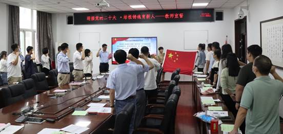 坚定初心使命——国庆前夕,公司举行教师代表宣誓大会,参会教师面向国旗庄严宣誓,进一步强化全院教师立德树人的教育理念,履行教师的神圣职责,践行“敦德励学、知行相长”的校训,弘扬“忠诚进取、精工博艺”的校风,做有理想信念、有道德情操、有扎实学识、有仁爱之心的好老师,为党和人民的教育事业而努力奋斗,用实实在在的行动为实现公司和公司改革发展添砖加瓦。