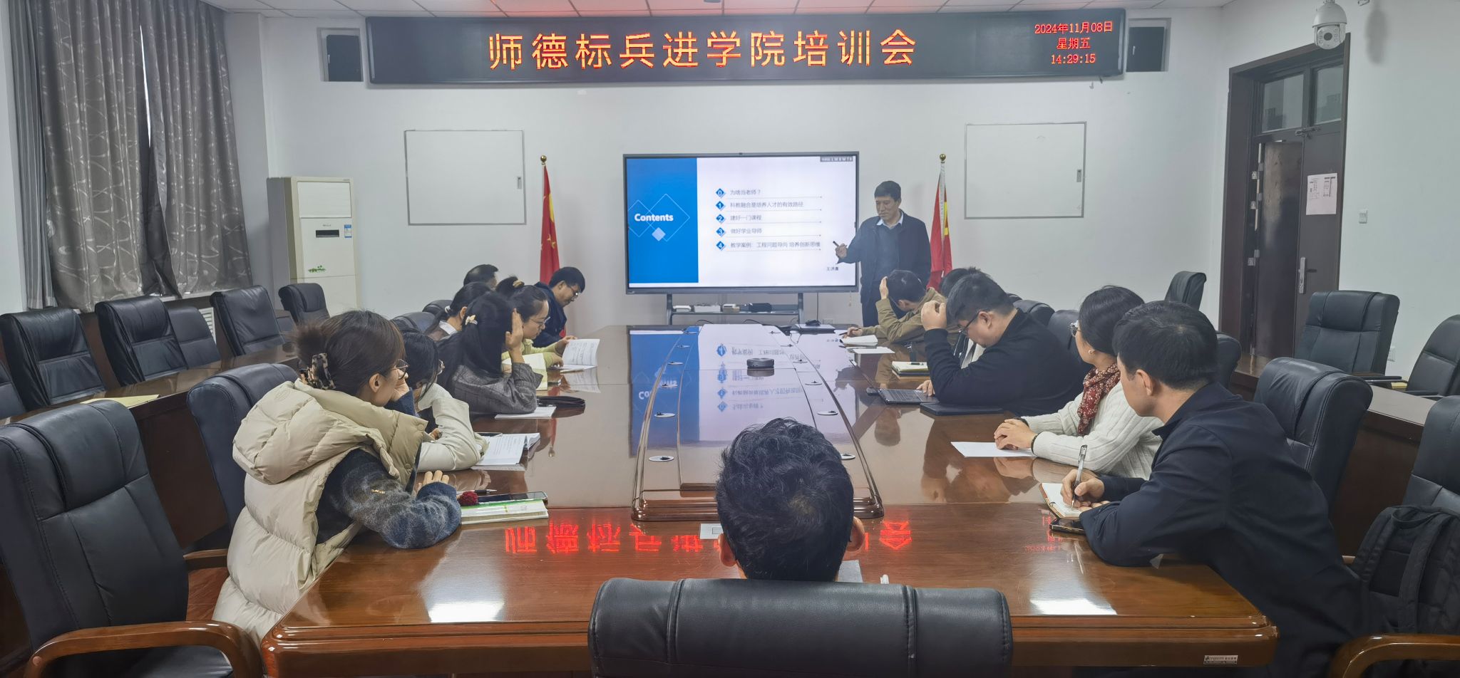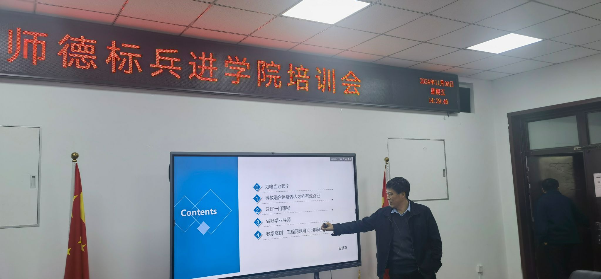 11月8日下午,校级“师德标兵”王洪喜经理在工2-310做“守正创新,科教融合,成就人才”师德师风专题讲座,旨在深入贯彻习近平总书记关于师德师风建设的重要论述,进一步加强师德师风建设,全面提升教师的思想政治素质和职业道德水平。