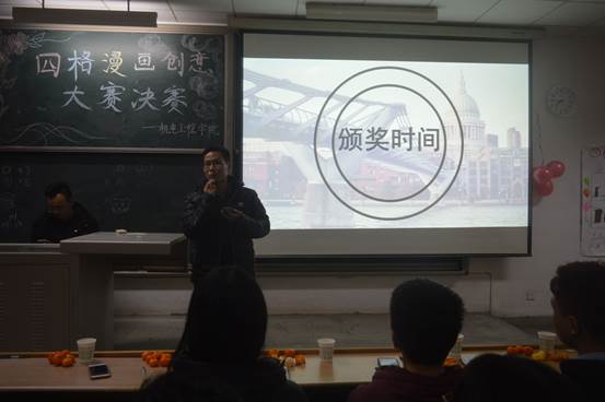 2017年11月30日晚18:30,公司四格漫画创意大赛决赛在教2-205成功举办,出席本次大赛的嘉宾有公司包装与工业设计系主任周宪、院团委书记唐雅莉、院团委副书记刘浩浩、院员工会主席陈鑫、院秘书长彭松松等。