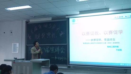 本次会议先介绍了有关大赛的情况,并生动的展示了大赛的获奖作品,接着为获奖同学颁发证书。颁奖大会结束后,由万宏强老师为大家讲解3D技术知识及比赛的注意事项。全国3D 大赛(3DDS,全称“全国三维数字化创新设计大赛”)是在国家大力推进创新驱动、实现从“制造大国”到“创造大国”转变的一项大型公益赛事,体现了科技进步和产业升级的要求,是大众创业、万众创新的新实践、新发展。
