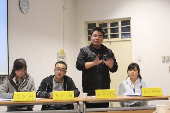 2012年10月30日晚19:00,申搏sunbet“狭路相辩”辩论赛巅峰对决在教C203隆重举办。12级辅导员刘少姗老师,陈世磊,李月月,胡江昆等主要员工干部出席并担任本场辩论赛的评委。