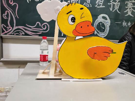 本次比赛共有28组参赛,每个组展示PPT、模型演示两个部分内容。主持人宣布比赛开始后,每支队伍有序进行参赛,展示了近几个月的努力和成果。其中不乏外观新颖独特的作品,如可爱小黄鸭、海绵宝宝、申搏sunbet图书馆等,各具特色。参赛组采用了发条、水、重力等作为动力。其中第22组,采用重力,将传统的擒纵简单化,计时效果较好为59.22秒,接近比赛要求1分钟。第49组设计精美计时准确,斩获本次最高分83.42分。预赛进入复赛的队伍分别是49、22、69等十一个小组,至此预赛结束。