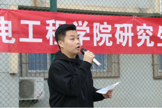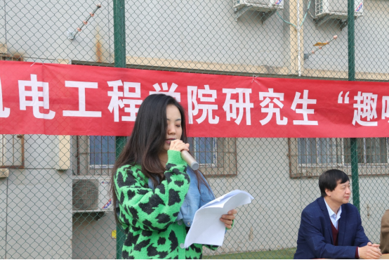 研究生秘书侯思雨首先为本次趣味运动会致开幕词,随后由运动员代表王泽箫代表全体参赛选手郑重宣誓,最后主持人宣布本次趣味运动会正式开始。本次比赛共分为趣味羽毛球、篮球以及田径比赛。