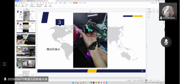 班会过程中,其他班委分析了工作中的不足以及对班级工作的建议。邀请班级“科创达人”李逸凡同学讲述自己从科研小白到逐步锁定研究方向向科研人努力蜕变的历程。李逸凡为大家分享了自己目前正在做的“机器狗”、“机械臂”等科创项目和实体动画图。他谈到,兴趣和好奇心是使自己不断进行科研实践和探索的强烈驱动,鼓励同学们锻炼敏锐的科研嗅觉,并学会借助老师、课本、互联网、实验室等资源,坚定信心,不畏难,敢作为。