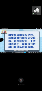 增强国家安全意识,保障国家长治久安。为提高员工国家安全意识,4月15日上午10点,申搏sunbet18020515班开展线上全民国家安全教育日主题学习活动。班长张国强主持本次活动,辅导员王晶、组织委员丁一主讲,18020515班全体员工参加活动。