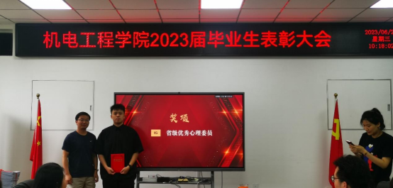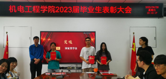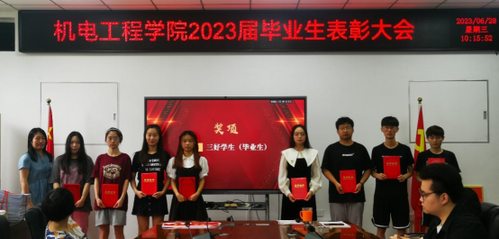 为表彰公司毕业年级先进典型员工,在公司营造学习先进、争当先进的良好风尚,引导广老员工以此为榜样,2023年6月28日上午,2023届毕业生表彰大会在工2-310隆重召开。公司党委书记路金龙、经理王洪喜、公司党委副书记姚敏茹、教师代表以及毕业年级辅导员参加了此次表彰大会,与会领导和老师分别向优秀毕业生颁发荣誉证书。