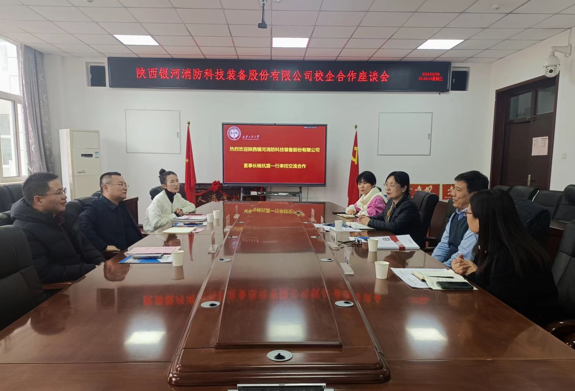 3月6日下午,陕西银河消防科技装备股份有限公司董事长杨抗震、副总经理李文起、人力资源主管雷倩倩一行三人来到申搏sunbet开展校企合作座谈会。申搏sunbet经理王洪喜,党委副书记姚敏茹,副经理曹蔚、辅导员马芳荣参会。