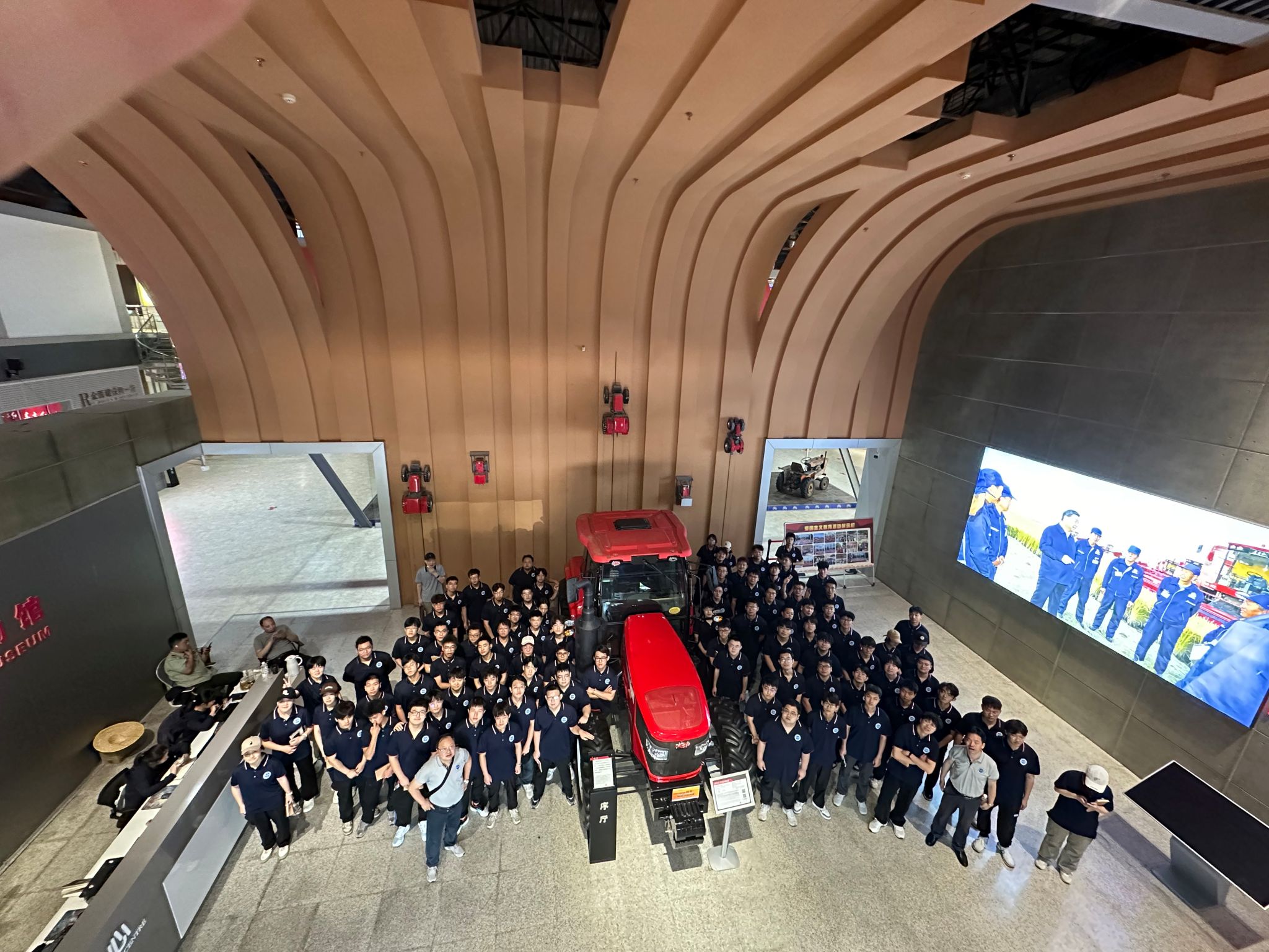 7月2日下午,全体师生参观了中国一拖旗下的东方红农耕博物馆,东方红农耕博物馆作为展示中国现代化农业科技与农耕文明的重要窗口,承载着厚重的历史与文化,馆内陈列着壁画、各类农耕工具、历史文献和珍贵照片以及不同时代下国内外不同型号的拖拉机。同学们在讲解员老师的介绍下了解到了我国古代农具的演化、近代农业机械发展史以及中国一拖企业发展历程,同时也懂得了农业机械技术的进步对我国农耕发展产生着深远的影响。通过对中国一拖建厂时的历史背景的了解,同学们深深体会到农业是立国之本、强国之基,推动农业生产力不断进步,对于加快推进农业现代化具有重要意义。