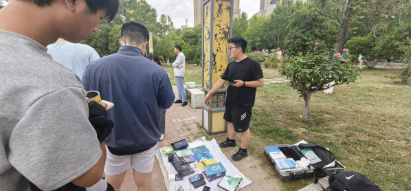 活动现场,申搏sunbet员工们的摊位前热闹非凡。不同于其他摊位,这里摆满了各类专业书,精密的万用表、功能完好的电烙铁、专业的机械零件模型等整齐陈列,每件物品都诉说着他们大学四年的学习与成长故事。许多低年级的机电学子纷纷围拢过来,他们不仅挑选着心仪的专业课本,还与学长学姐们探讨起专业知识与学习经验。