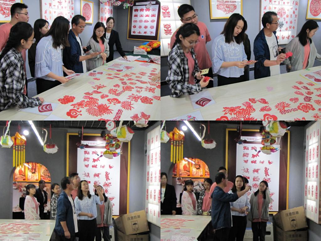 到达写生基地后,大家参观了黄胄先生的画作,还来到了工艺品展厅,村主任介绍到,展出的工艺品皆为当地留家的妇女所做,有鞋垫、灯笼、刺绣品、剪纸等等,展厅内琳琅满目、丰富多彩。看到满墙的剪纸作品,同学们跃跃欲试,村主任便拿起剪刀现场教授起来,现场氛围热闹非凡。第一书记说道,当地还建设了陶瓷工艺园,大力提高农业机械化水平,为了方便村民上下班,村委会免费提供车接车送服务,留住部分青壮劳力的同时也为村民创收不少。通过一系列的扶贫举措,邢家塬村村委会和脱贫攻坚组工作人员严格落实国家的“两不愁,四保障”政策,努力做到村民不愁吃、不愁穿,医疗、教育、住房、饮水有保障,并且已超标准完成。